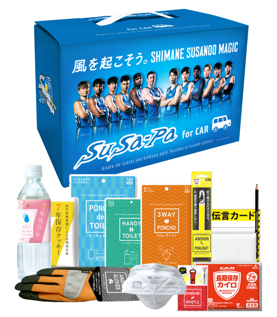 そんな願いを込めて、試合会場への行き帰りや日常のドライブ、そして日々の暮らしに寄り添う特別な防災アイテムをご用意しました。